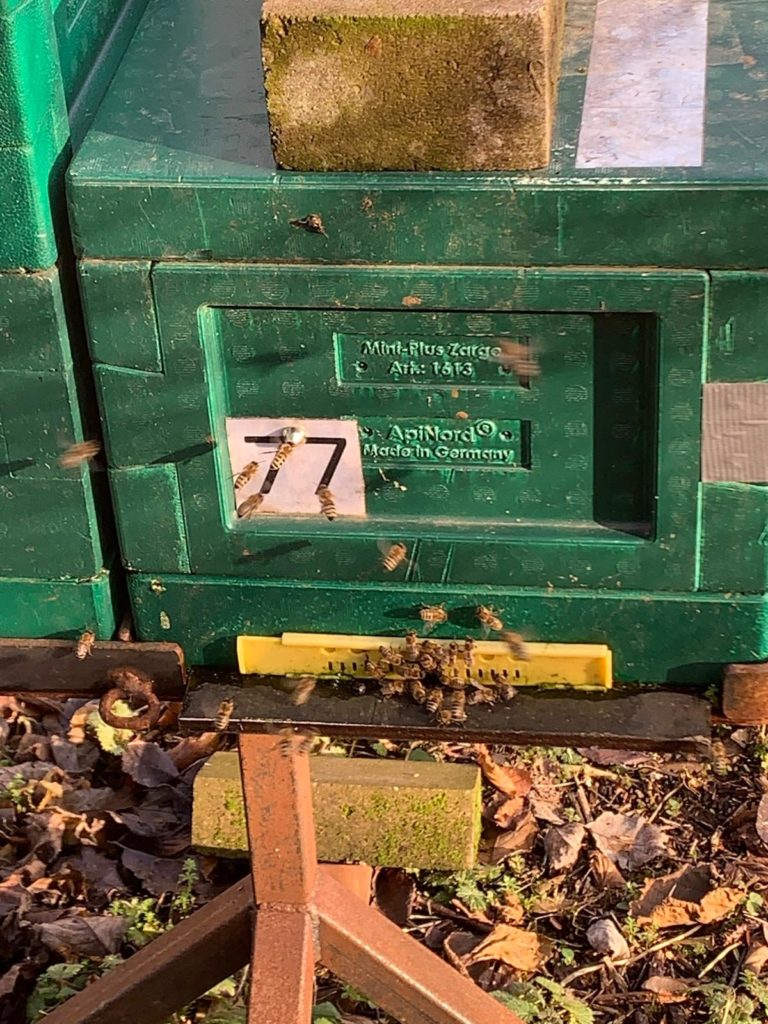 Mir loossen e gefaangene Beieschwarm an eng grouss Këscht alafen a mir maachen Ableger fir eis Mini-Plus Këschten.